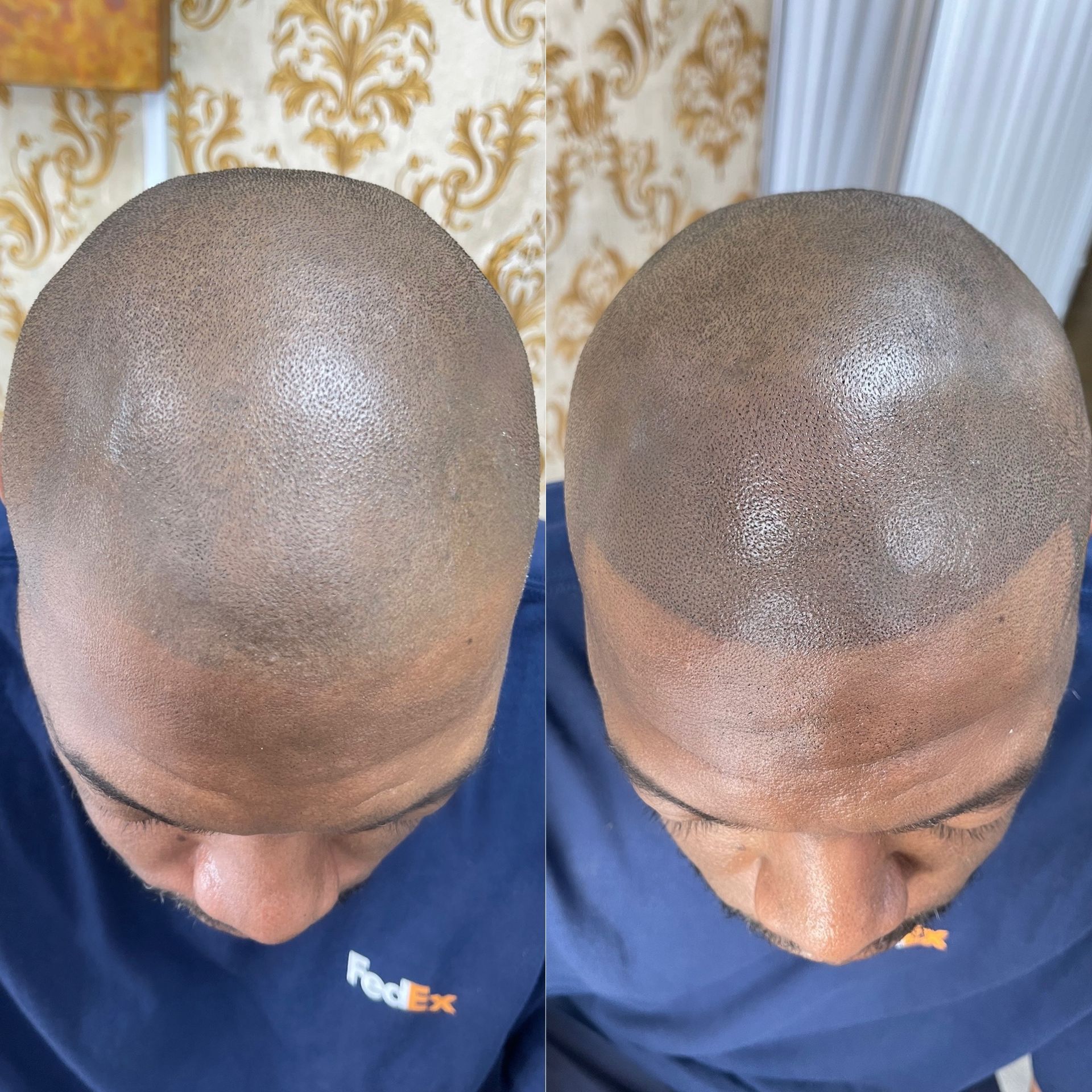 Transform your image with our scalp micropigmentation service! This innovative process simulates the appearance of hair follicles using follicle-like replication tattoo techniques. This provides an illusion of fuller hair for those experiencing thinning or hair loss. Using this technique we can address different types of pattern balding, alopecia, scarring, and this process can be used to perfect density post hair transplant. Our clinic works with you to create a natural-looking hairline or density that complements your features. Say goodbye to visible scalp and hello to confidence with this discreet and effective solution! Inquire for more information and schedule a free consultation today!